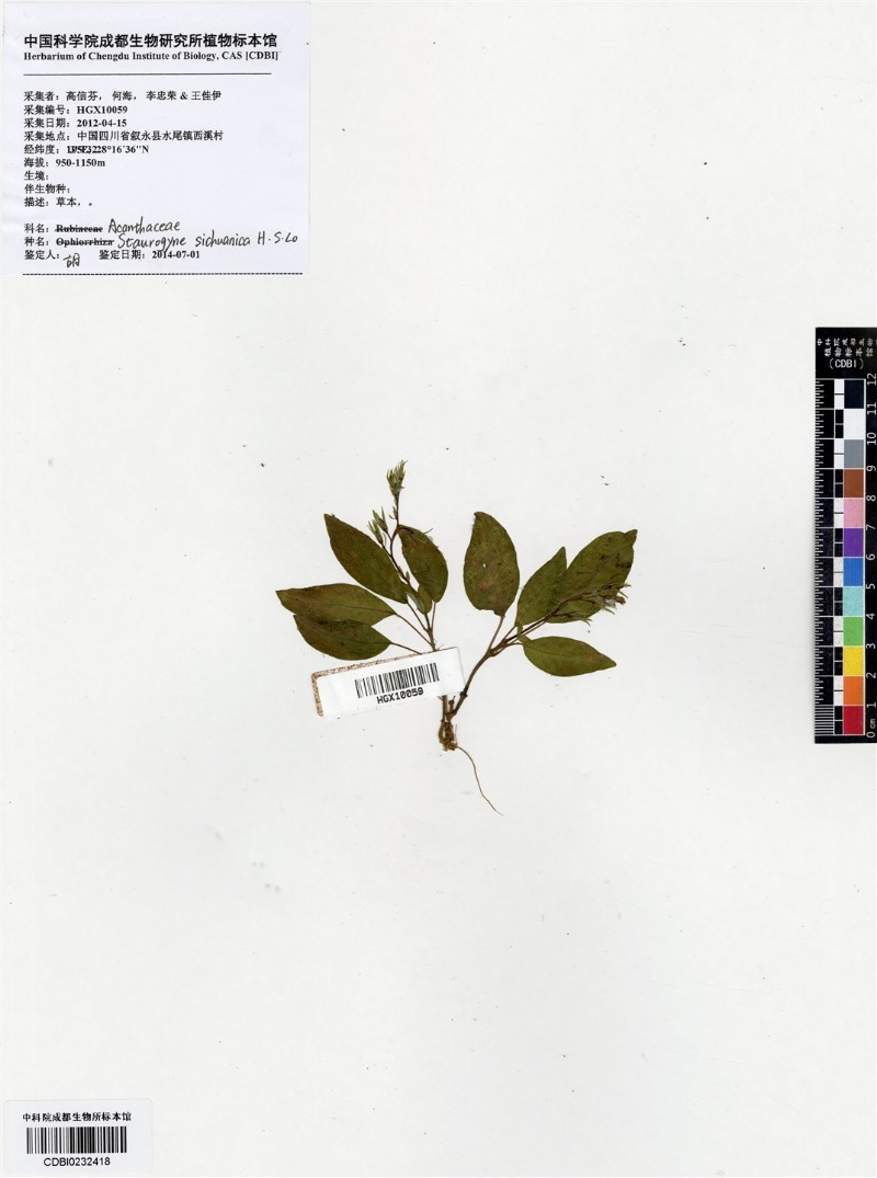 学名 | Staurogyne sichuanica H. S. Lo |