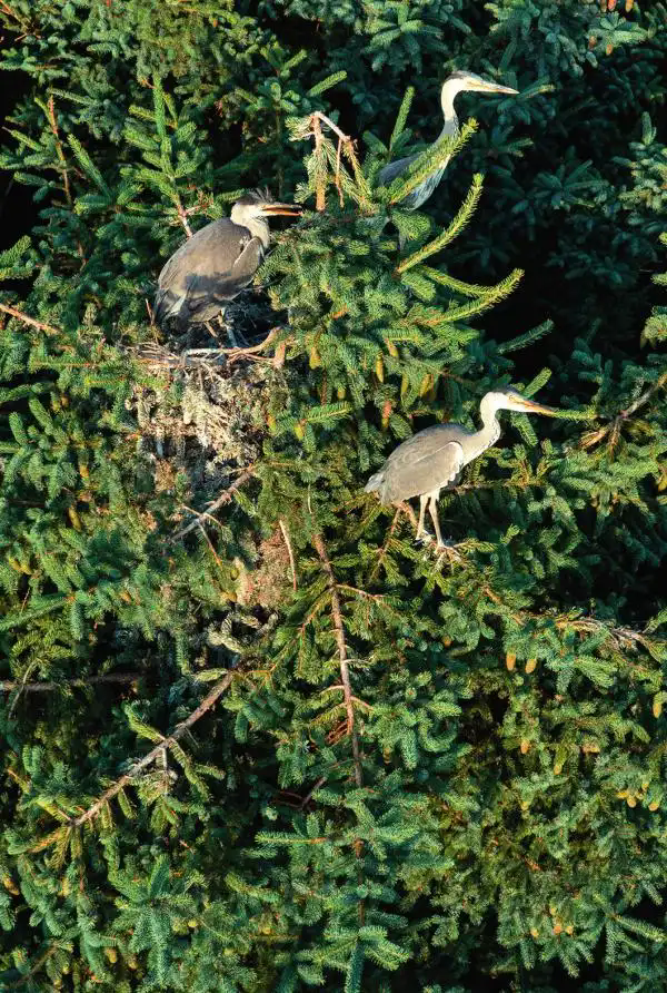 在龙江森工集团通北林业 局公司施业区,国家“三有” 保护动物苍鹭在鸟巢中休息 (2024年7月24日摄) 谢剑飞摄 / 本刊