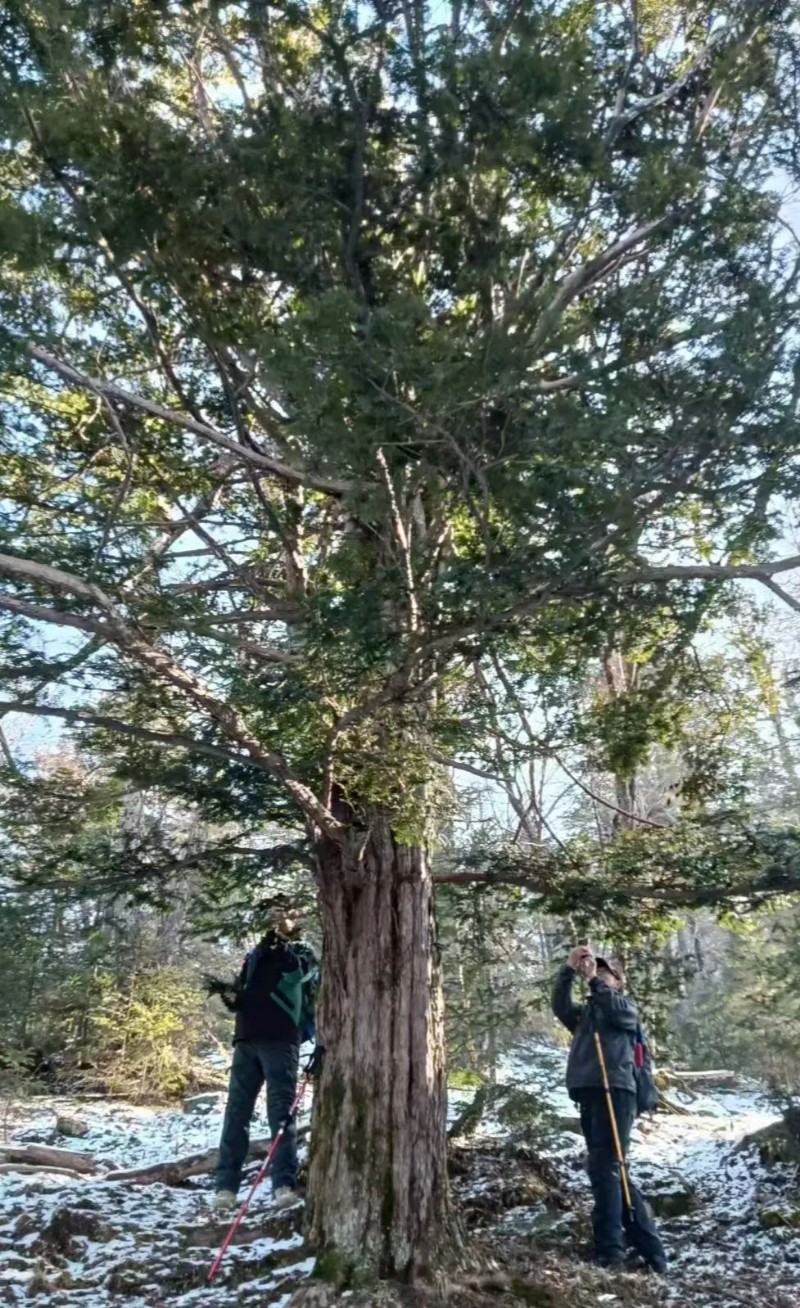 今天,它以繁荣而茂盛的姿态展现于世人面前。但大多数人们不知道的是,它的生长非常缓慢、自然繁殖非常困难,它的“同胞”日益稀少,因此已被列为国家一级保护植物、国家二级古树。它的每一个“兄弟姐妹”都是那么弥足珍贵。因为树种珍稀,所以词典上、网络上都有了越来越多关于它的记述。在漫长而深沉的等待里,它像古往今来的文人墨客般,有了自己的字、号,或者说笔名,如:紫杉、赤柏松等,是红豆杉科、红豆杉属、常绿乔木。