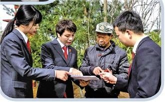 ▲ 2024年12月,周梦琳(左二)组织修复生态后,当事人在笔录上签字。
