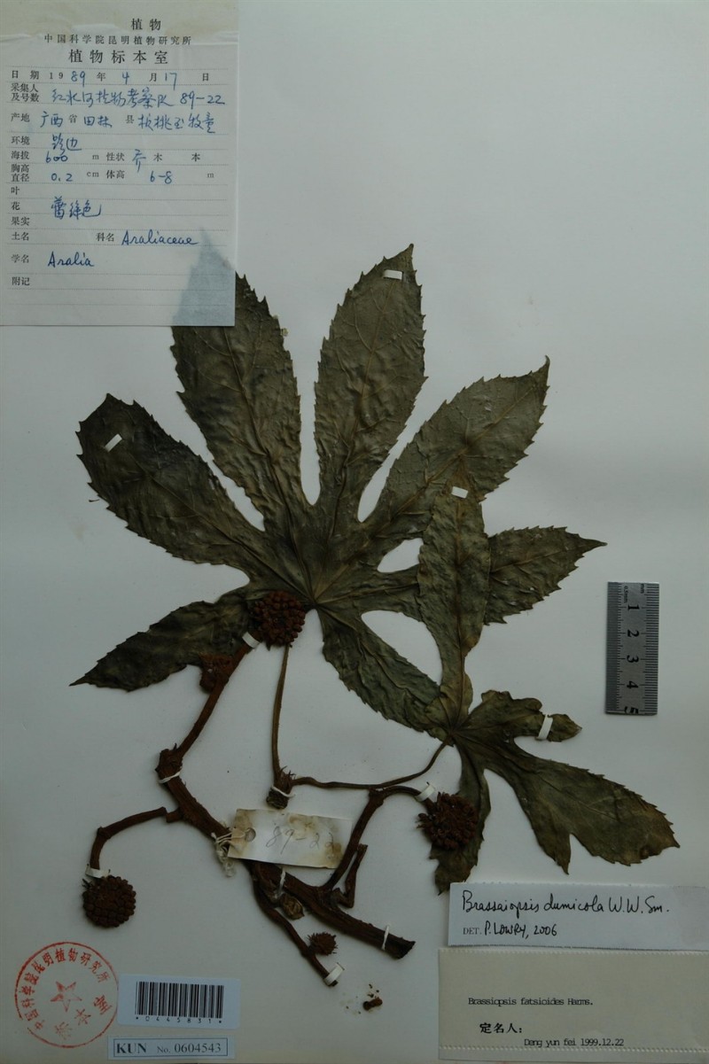 学名 | Brassaiopsis dumicola W. W. Smith W.W.Smith |